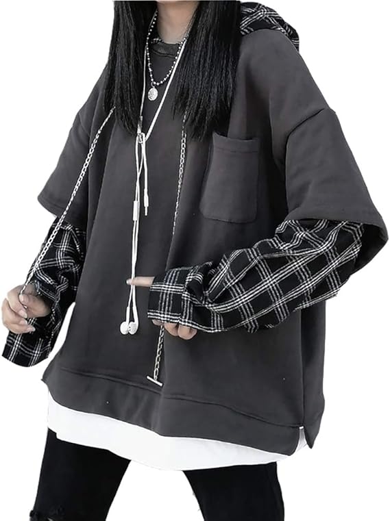 Amazon Co Jp Yemocile パーカー 重ね着 スウェッ 長袖 レディース プルオーバー ゆったり フード付き 重ね着風 厚手 おしゃれ カジュアル ロング丈 可愛い 秋冬 服 ファッション小物